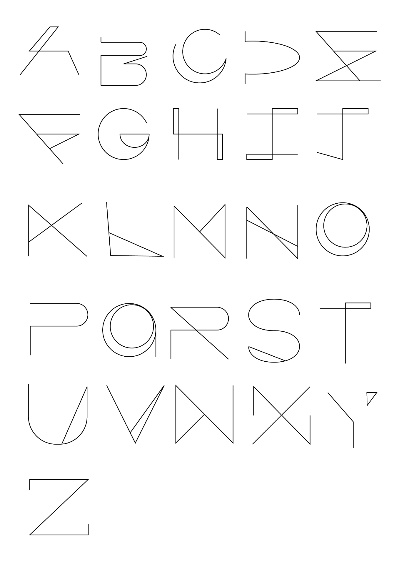 運用幾何圖形,線、三角形、四邊形、圓形等元素,營造一種似懂非懂、模稜兩可的太空感,在單調的垂直與水平交界,加上三角形去點綴,或是加大傾斜的程度,比例控制在正方形裡,整體上希望展現高科技風格的圖騰型文字。