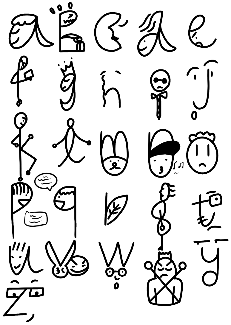 「假如每個字母都有生命?」這是一個挑戰,在固有的線條裡面延伸、發揮,畫的過程中很燒腦也很好玩,畫完之後我已經不認為這些是字母,是一群個性獨特的人在同一個畫面裡面,矛盾卻和諧。